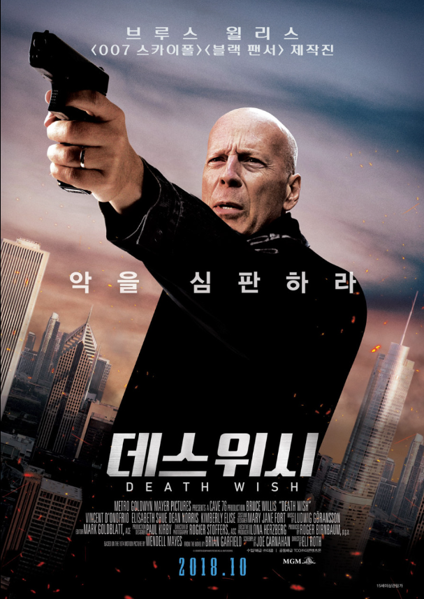 답답함 없이 악인을 심판하고 시원한 액션까지 보여주는 이야기다. 깔끔한 결말이 개운함을 더해주고 원작과는 조금 다른 점들이 눈에 보인다. 녹슬지 않은 액션을 보여주는 데스위시의 브루스 윌리스를 보니 반갑다.